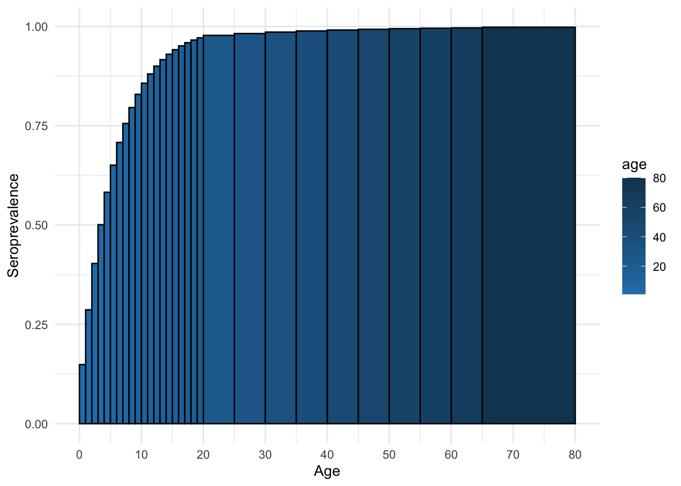ggplot(mossong_equil_seroprev_df, aes(x = age, y = seroprev, fill = age)) +